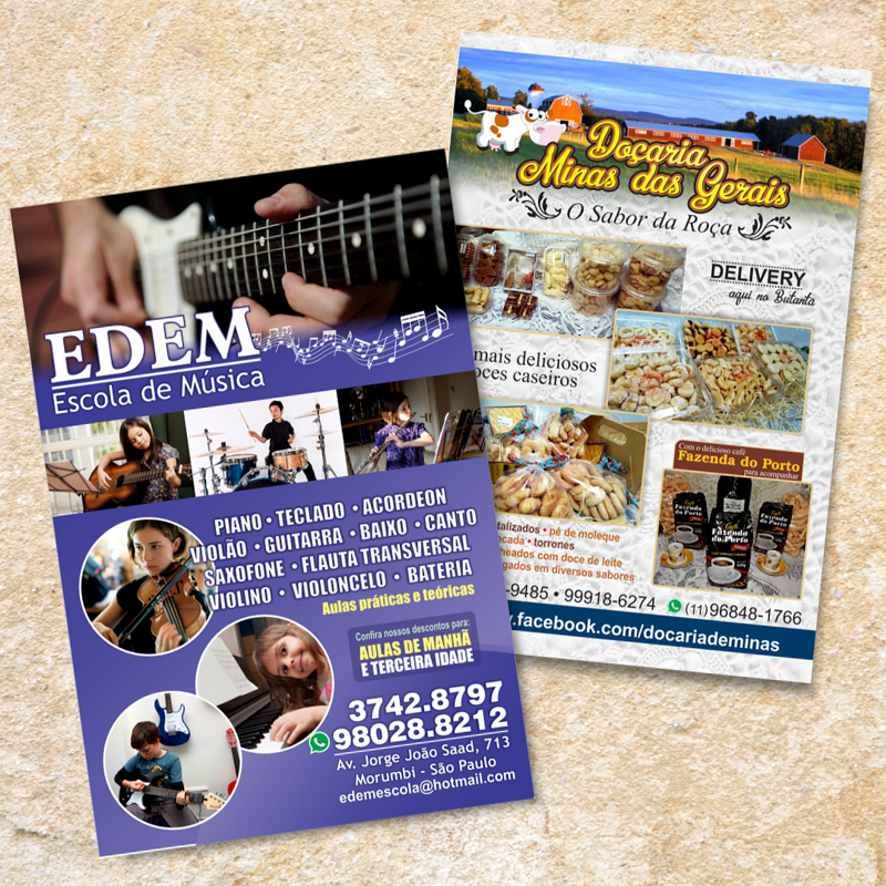 - Papel couchê com gramatura em 90g, 115g e 250g