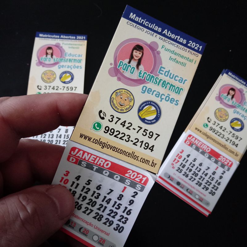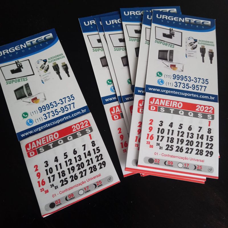 O imã para geladeira é a melhor forma para deixar seu contato sempre à mão do seu cliente. E agregar o calendário do ano garante que ele estará ali pelo menos nos 365 dias do ano.